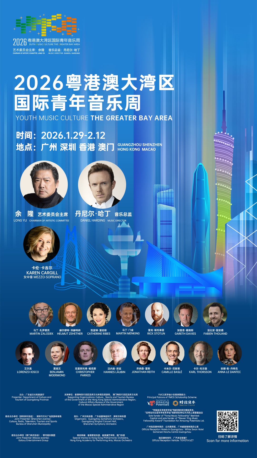 粤港澳大湾区国际青年音乐周由广东省文化和旅游厅主办,湾区五大国际知名音乐机构:来自广东的广州交响乐团、星海音乐厅、深圳交响乐团,来自香港特别行政区的香港管弦乐团和来自澳门特别行政区的澳门乐团共同承办。广州交响乐团终身荣誉音乐总监、著名指挥家余隆先生担任音乐周的艺术委员会主席,著名指挥家丹尼尔·哈丁(Daniel Harding)担任音乐总监(任期从2024年至2028年)。