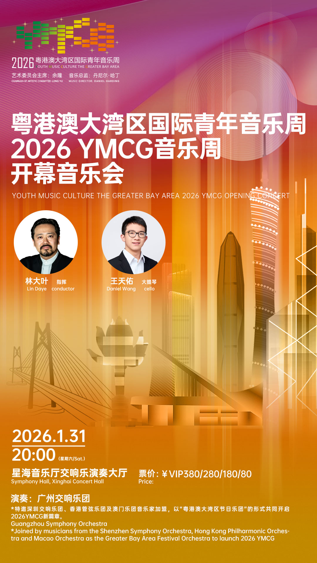 特邀深圳交响乐团、香港管弦乐团、澳门乐团音乐家加盟,以“粤港澳大湾区节日乐团”的形式共同开启2026 YMCG新篇章。